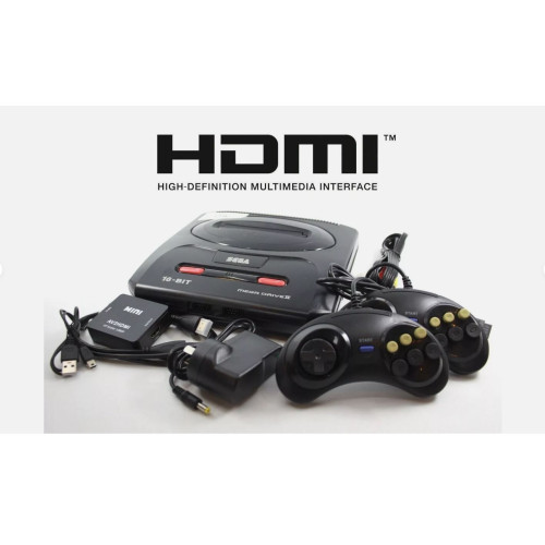 Sega Mega Drive Console (PAL) + Cords + 2x Controllers + HDMI