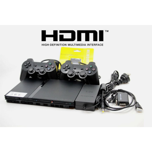 Sony Playstation 2 Slim Console - Black - w/ 2x Controllers + Cords & HDMI